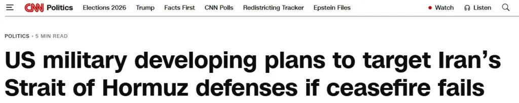 ABD merkezli CNN’in haberine göre, Washington yönetimi, İran ile yürürlükte olan ateşkesin bozulması ihtimaline karşı Hürmüz Boğazı’nda kapsamlı askeri senaryolar üzerinde çalışıyor. Bu planlar, küresel enerji sevkiyatının kilit noktası olan bölgede çok daha yoğun ve hedef odaklı operasyonları içeriyor.