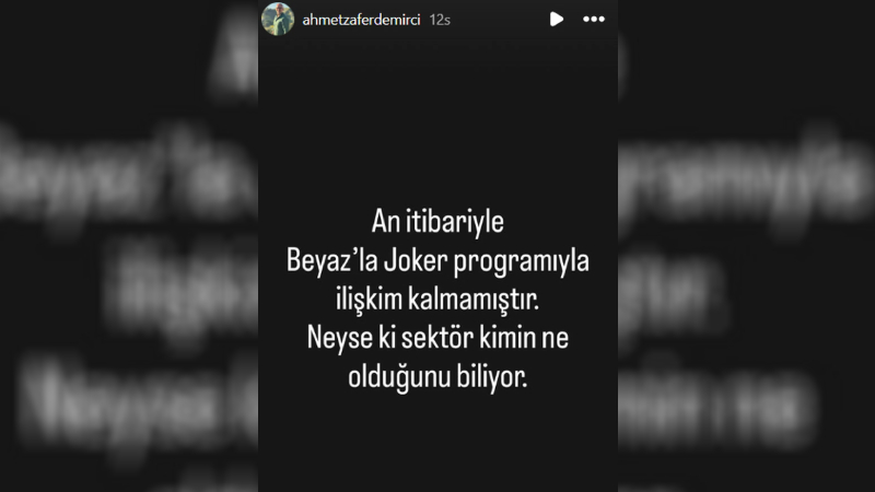“An itibarıyla Beyaz’la Joker programıyla ilişkim kalmamıştır. Neyse ki sektör kimin ne olduğunu biliyor.“