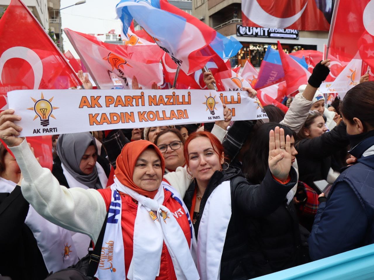 Geldiğimiz andan itibaren yol boyu o coşkulu kalabalıklar hakikaten bizi de farklı bir heyecana boğdu. Gerçi bizi Nazilli gayet iyi tanır. Eğitimde şehrimize kazandırdığımız 557 yeni derslikle, 2 kapalı spor salonuyla, 2 pansiyonla tanır. Gençlik ve sporda yaptığımız 4 yeni bina ile yatak kapasitesini 2 bin 107’ye çıkardığımız öğrenci yurtlarımızla tanır. İnşa ettiğimiz yarı olimpik yüzme havuzuyla, gençlik merkeziyle, 10 futbol sahasıyla, tenis kortuyla tanır.