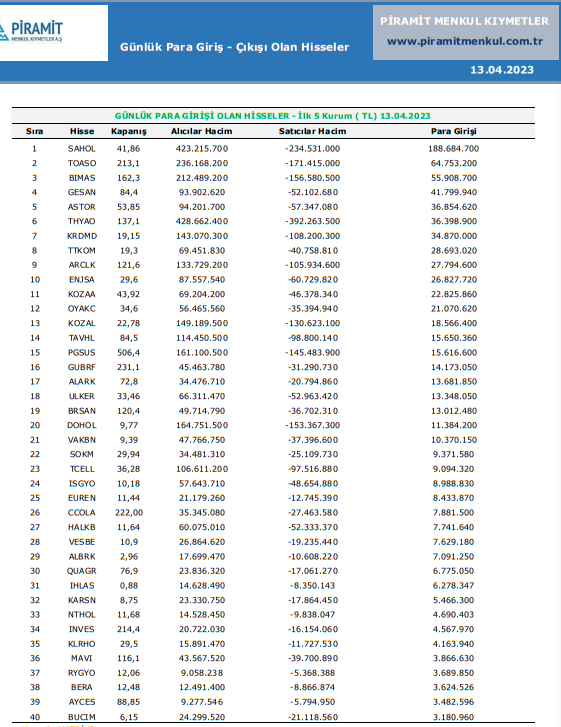 -Hissede yükseliş ve para çıkışı aynı anda oluyorsa, direnç noktalarından gelebilecek olası satışlara dikkat edilmesi gerektiği,