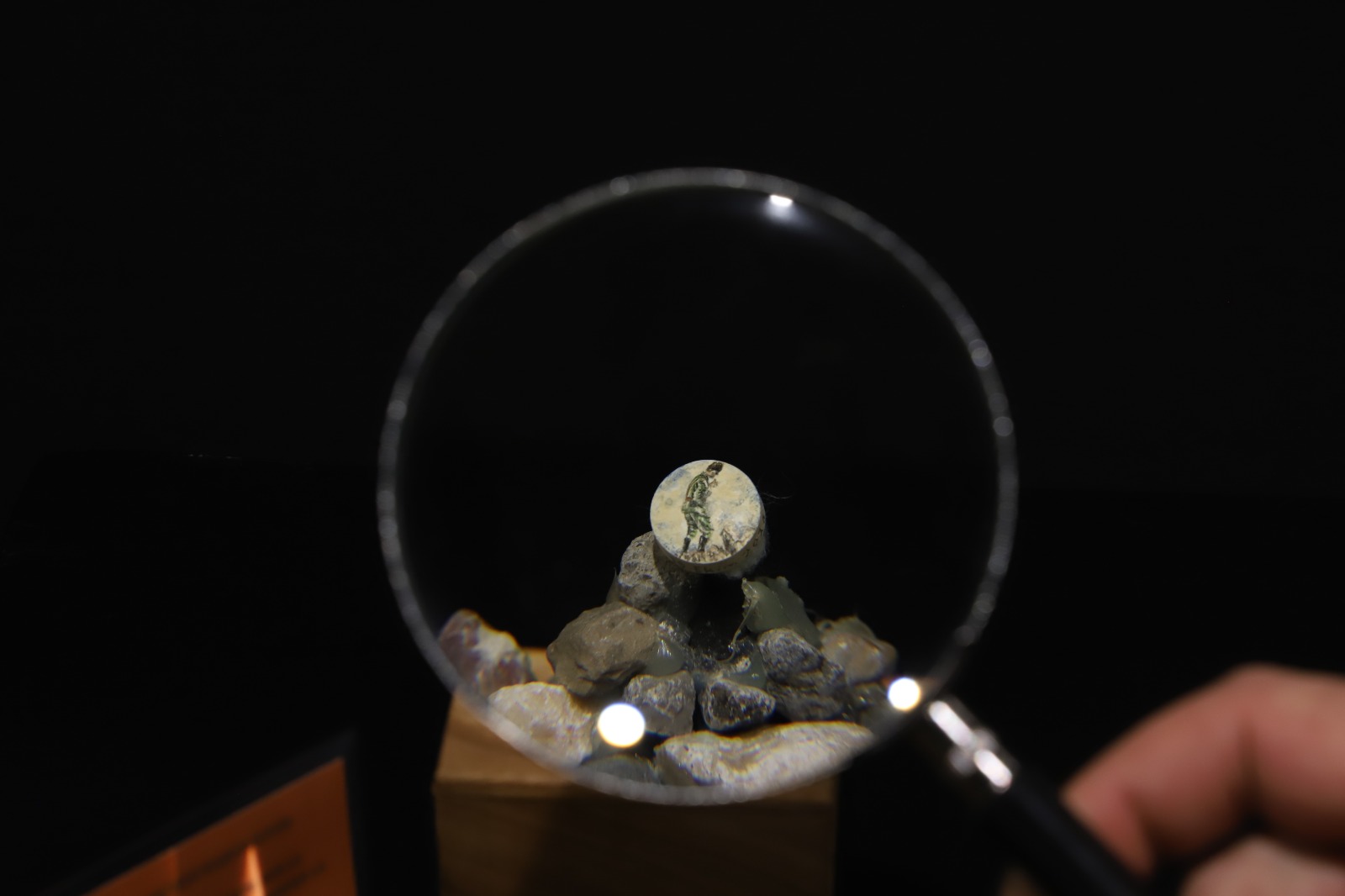 Doğru’nun pirinç tanesi, incir çekirdeği, dil çubuğu, madeni para, hap ambalajı, poşet çay, makarna, kabak çekirdeği gibi objelere “büyüteçle görülebilen” resimlerle oluşturduğu tıbbi mikro ve mikro resim sergisi “Hafif Neşter” görkemli bir törenle sanatseverlerin izlenimine sunuldu.