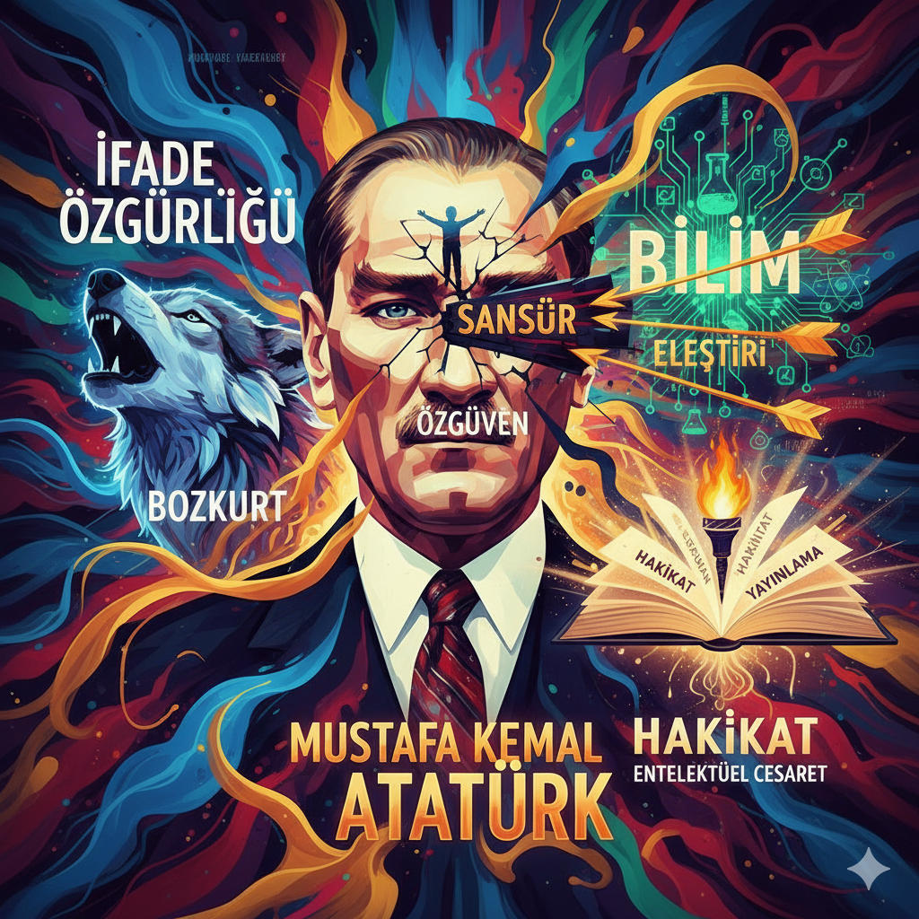 Atsız Burucu köşe yazısında, Mustafa Kemal Atatürk’ün ifade özgürlüğüne ve bilime verdiği önemi gösteren çarpıcı bir olayı anlatmaktadır. Metin, Atatürk’ün 1932’de yayınlanan ve kendisine “Grey Wolf” (Bozkurt) adıyla iftiralar içeren kitabı sansürlemek yerine, aksine çevrilip yayınlanması talimatını verdiğini açıklamaktadır. Bu kararın, liderin kendi eserine ve Türk halkının hakikati ayırt etme bilincine duyduğu derin güvenden kaynaklandığı vurgulanmaktadır. Ayrıca metin, Atatürk’ün meşhur sözleri olan “Hayatta en hakiki mürşit ilimdir, fendir” ve sözlerinin bilimle ters düşmesi halinde bilimin seçilmesi gerektiğini öğütleyen düşünce yapısını öne çıkarmaktadır. Sonuç olarak, kaynak Atatürk’ü eleştiriye açık ve hakikatten korkmayan entelektüel cesarete sahip bir lider olarak tasvir etmektedir.