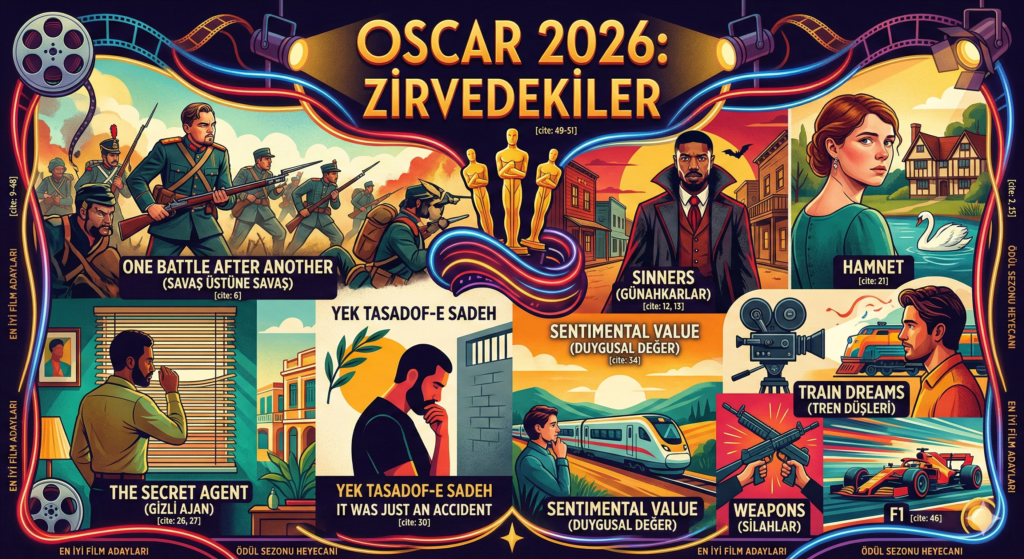 Dr. Alper Sezener tarafından kaleme alınan bu metin, 2026 Oscar sezonunun öne çıkan yapımlarını ve ödül yarışındaki iddialı adayları kapsamlı bir şekilde değerlendirmektedir. One Battle After Another ve Sinners gibi büyük prodüksiyonların yanı sıra Hamnet ve The Secret Agent gibi dramatik derinliği yüksek uluslararası filmler, teknik başarıları ve oyuncu performanslarıyla analiz edilmektedir. Yazar, festivallerden gelen ödül bilgilerini ve eleştirmen yorumlarını harmanlayarak Paul Thomas Anderson, Jessie Buckley ve Leonardo DiCaprio gibi isimlerin şansını vurgulamaktadır. Metin boyunca sinema dünyasındaki güncel kalite arayışı sorgulanırken, hem ana akım hem de bağımsız sinemadan seçilen nitelikli eserler üzerinden kişisel favoriler ve akademi tahminleri paylaşılmaktadır. Nihayetinde bu kaynak, izleyiciler için prestijli ödül törenleri öncesinde yol gösterici bir modern sinema rehberi niteliği taşımaktadır.