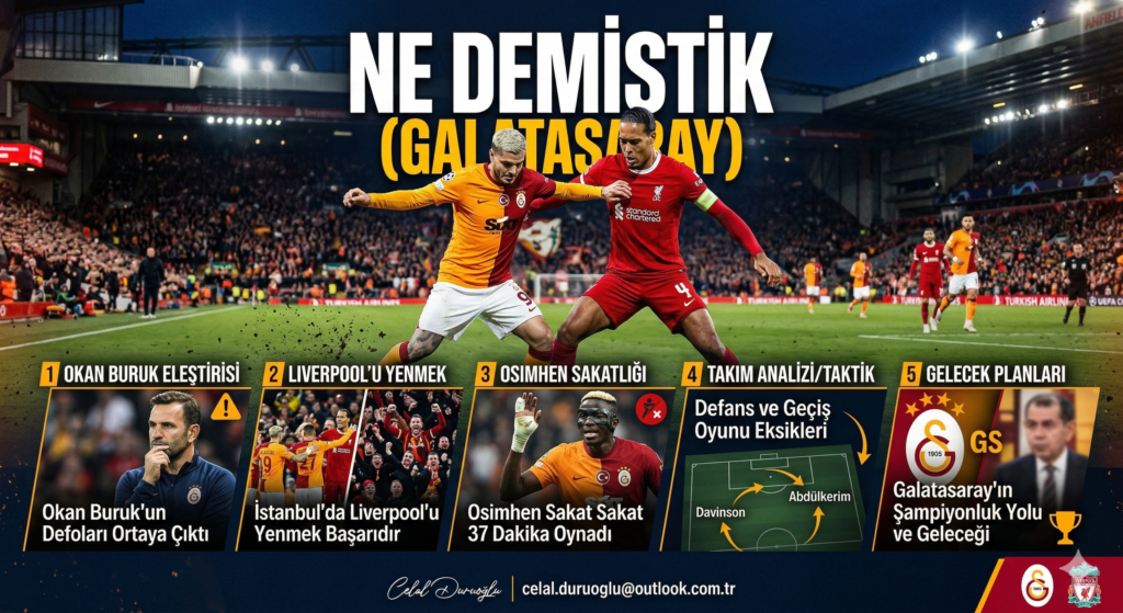 Bu köşe yazısı, Celal Duruoğlu tarafından kaleme alınan ve Galatasaray ile teknik direktör Okan Buruk’un Avrupa arenasındaki performansını sert bir dille eleştiren bir köşe yazısıdır. Yazar, takımın Liverpool karşısındaki mağlubiyetini Buruk’un stratejik hatalarına, taktiksel eksikliklerine ve oyuncu değişikliklerindeki yetersizliğine bağlamaktadır. Özellikle teknik heyetin sakatlık yönetimi ve kadro tercihlerini sorgulayan yazı, Okan Buruk’u vasat bir hoca olarak nitelendirerek büyük başarıların bu yönetim anlayışıyla gelmeyeceğini savunmaktadır. Duruoğlu, kulüp yönetiminin Avrupa’da kalıcı başarı için antrenör konusunda radikal kararlar alması gerektiğini vurgulamaktadır. Sonuç olarak kaynak, Galatasaray’ın mevcut potansiyelinin teknik yetersizlikler nedeniyle heba edildiğini iddia eden eleştirel bir analiz sunmaktadır.