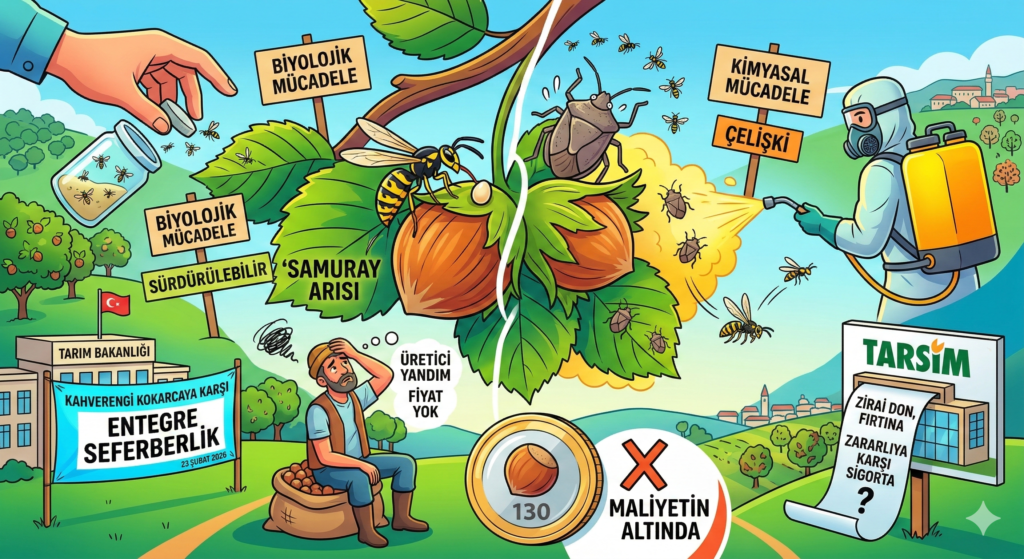 Bu analiz, fındık tarımını tehdit eden kahverengi kokarca zararlısıyla mücadeledeki eksiklikleri ve üreticilerin yaşadığı ekonomik dar boğazı eleştirel bir dille ele almaktadır. Yazar, devletin sunduğu Samuray arısı gibi biyolojik çözüm stratejilerinin geç kaldığını ve kimyasal ilaçlama yöntemleriyle çeliştiğini vurgulamaktadır. Düşük fındık fiyatları nedeniyle çiftçilerin bahçe bakımından vazgeçtiği belirtilirken, TARSİM sigortasının zararlı böcek hasarlarını kapsamaması önemli bir sorun olarak sunulmaktadır. Makale, üreticinin emeğinin korunması için fiyat politikalarının güncellenmesi ve daha tutarlı bir eylem planı hazırlanması gerektiğini savunmaktadır. Sonuç olarak, fındık sektöründeki yapısal sorunlar çözülmediği takdirde rekolte kayıplarının artarak devam edeceği uyarısı yapılmaktadır.