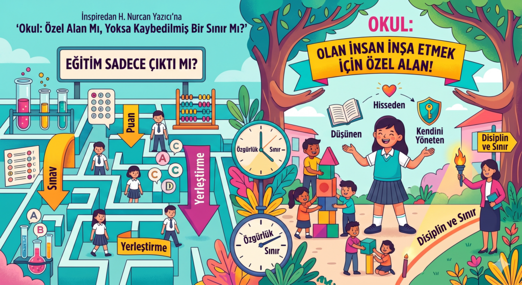 Yazar H. Nurcan Yazıcı tarafından kaleme alınan bu köşe yazısı, modern eğitim sisteminin insani değerlerden uzaklaşarak yalnızca akademik başarıya odaklanmasını eleştirmektedir. Mevcut düzenin çocukları tanımak yerine sadece ölçmeye ve sıralamaya yönelik bir yapı kurduğunu belirten yazar, okulların güvenli ve disiplinli birer “özel alan” olma özelliğini yitirdiğini savunmaktadır. Eğitimdeki bu otorite boşluğu ve kuralsızlığın, genç bireylerde derin bir değersizlik hissi ile kontrolsüz davranışlara yol açtığı vurgulanmaktadır. Çözüm olarak öğretmenin toplumsal statüsünün güçlendirilmesi, müfredatın karakter gelişimini içerecek şekilde yenilenmesi ve okul ile dış dünya arasında net sınırlar çizilmesi önerilmektedir. Metin, eğitimin temel amacının sınav odaklı bireyler üretmek değil, kendini yönetebilen erdemli insanlar inşa etmek olması gerektiğini hatırlatmaktadır. Sonuç olarak, okulların yeniden disiplin, sevgi ve net kurallarla örülü birer güvenli sığınak haline getirilmesi çağrısında bulunulmaktadır.