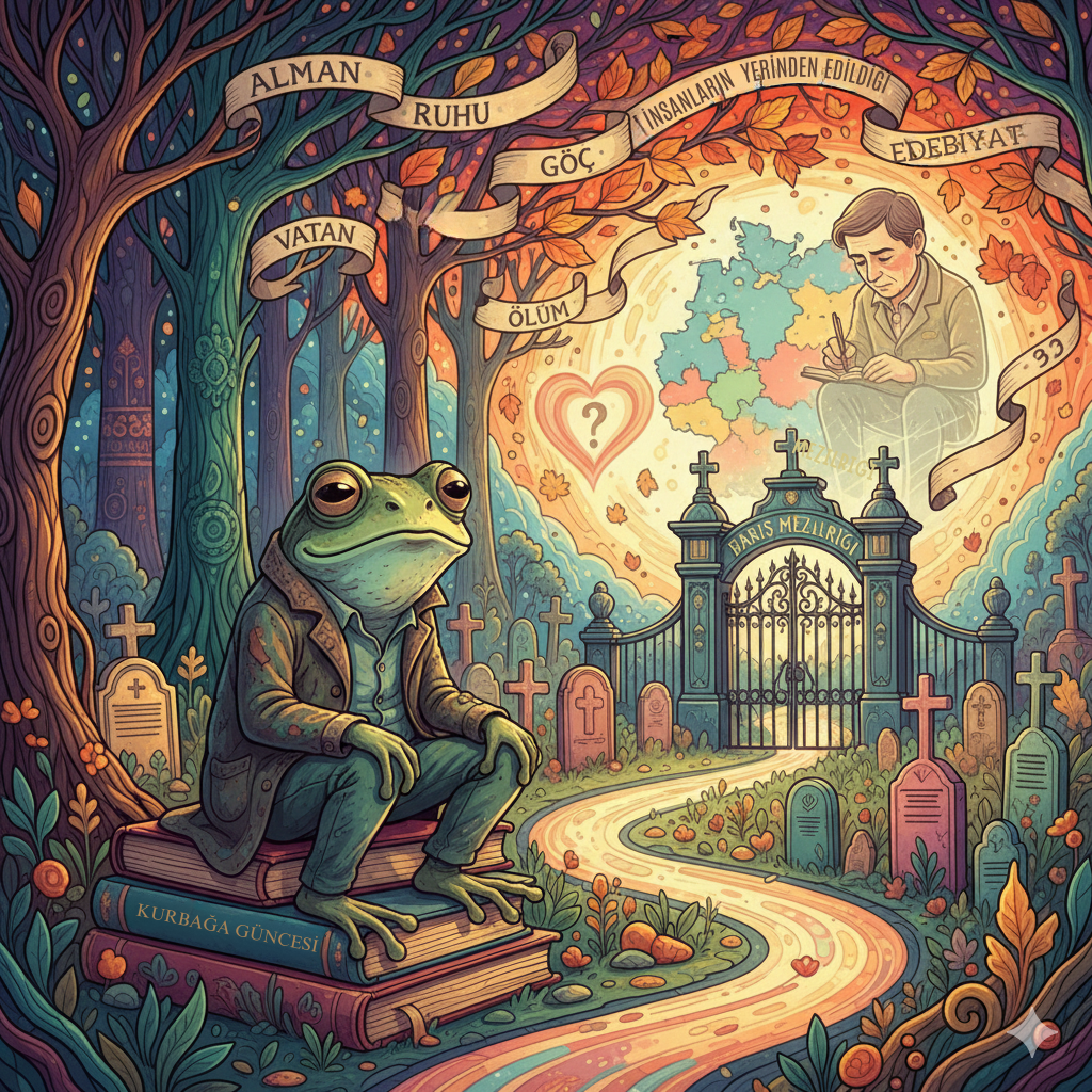 Bu makale, Dr. Lütfü Şahsuvaroğlu’nun dünyaca ünlü yazar Günter Grass ve onun Kurbağa Güncesi adlı eseri üzerine yaptığı kapsamlı bir incelemeyi sunmaktadır. Yazar, Alman milli kimliğinin inşasında ormanlar, bahçeler ve mezarlıkların taşıdığı derin sembolik anlamları ele alırken, romandaki “Barış Mezarlığı” projesi üzerinden göç ve aidiyet kavramlarını tartışmaktadır. Metinde, iki olgun aşığın ölüleri vatan toprağına kavuşturma çabası ile modern dünyanın kapitalist ve siyasi gerçekleri arasındaki trajik çatışma vurgulanmaktadır. Şahsuvaroğlu, otuz yıl aradan sonra kitabı yeniden değerlendirirken geçmişteki önyargılarını sorgulamakta ve eseri günümüzün kitlesel göç sorunlarıyla ilişkilendirmektedir. İnceleme, savaşların ve yerinden edilmelerin yarattığı toplumsal travmaların edebiyat aracılığıyla nasıl bir vicdan muhasebesine dönüştüğünü zarif bir dille özetlemektedir.