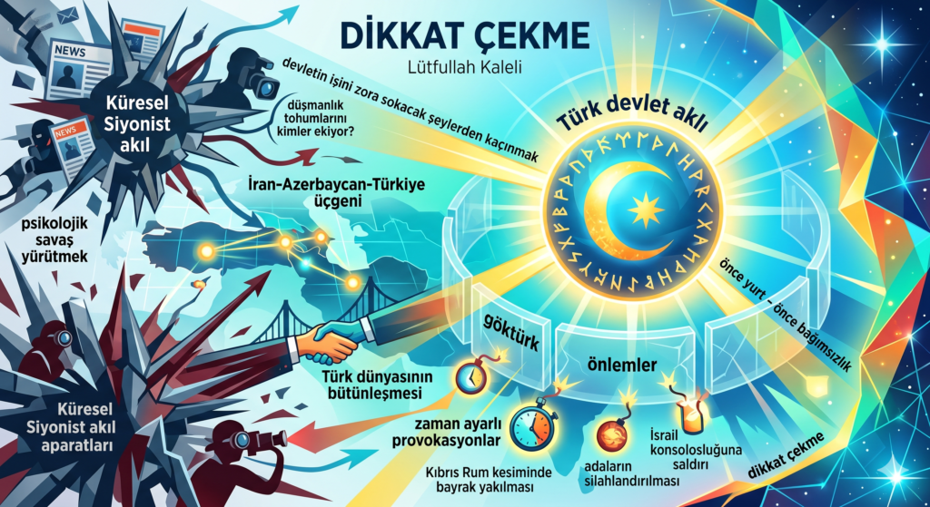 Yazar Lütfullah Kaleli, Küresel Siyonist yapıların ve bunlara bağlı grupların Türk dünyasının birleşmesini engellemek için yürüttüğü psikolojik savaş faaliyetlerine dikkat çekmektedir. Metin, özellikle Türkiye, Azerbaycan ve İran arasındaki bağları koparmayı hedefleyen sosyal medya manipülasyonları ve sahte haber ajansları gibi gizli oluşumların tehlikelerini vurgulamaktadır. Türk devlet aklının bu zaman ayarlı provokasyonların farkında olduğu belirtilirken, vatandaşların mezhepçilik ve düşmanlık tohumu eken söylemlere karşı sağduyulu olması gerektiği ifade edilmektedir. Kıbrıs ve adalar meselesi gibi bölgesel gerilimlerin de bu geniş planın bir parçası olduğu savunularak, milli güvenliğin korunması için devlet stratejilerine destek verilmesi çağrısı yapılmaktadır. Sonuç olarak kaynak, vatansever bireylerin milli bağımsızlığı her türlü slogan ve yapay kutuplaşmanın üzerinde tutarak olaylar arasındaki gizli bağlantıları doğru analiz etmesi gerektiğini savunmaktadır.