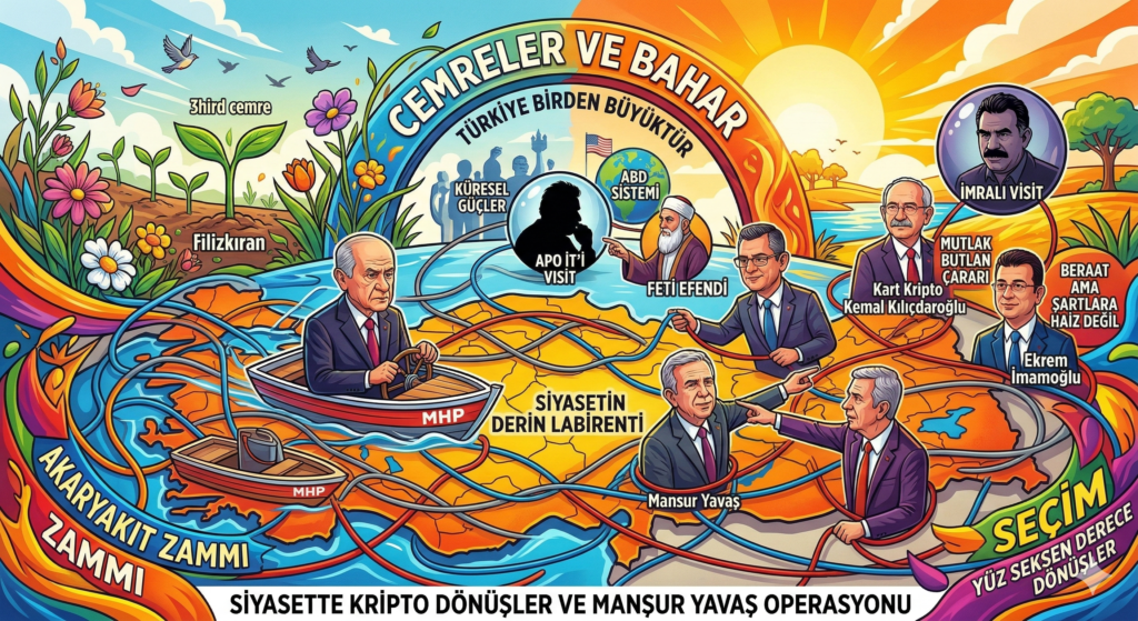 Mehmet Edip Ören, kaleme aldığı bu metinde Türkiye’nin siyasi labirentlerini, yaklaşan seçim atmosferini ve ekonomik istismarları eleştirel bir dille analiz etmektedir. Yazıda, akaryakıt zamları üzerinden yapılan fırsatçılıklar ve küresel güçlerin yerel siyaset üzerindeki stratejik yönlendirmeleri sert bir üslupla sorgulanmaktadır. Özellikle Devlet Bahçeli’nin ani siyasi manevraları ve Cumhuriyet Halk Partisi içerisindeki “kripto” olarak nitelendirilen aktörlerin gizli ajandaları üzerinde durulmaktadır. Yazar, Ekrem İmamoğlu ve Mansur Yavaş gibi isimlerin siyasi tasfiye süreçlerini, muhalefetin iktidarla olan örtülü iş birliğine dayandırarak açıklamaktadır. Türk milliyetçilerinin birleşememesini bir talihsizlik olarak gören metin, ülkenin kaderini belirleyen derin operasyonlara karşı okuyucuyu uyarmaktadır. Sonuç olarak eser, güncel politikanın görünen yüzünün ardındaki karmaşık çıkar ilişkilerini ve samimiyetsiz dönüşleri deşifre etmeyi amaçlamaktadır.