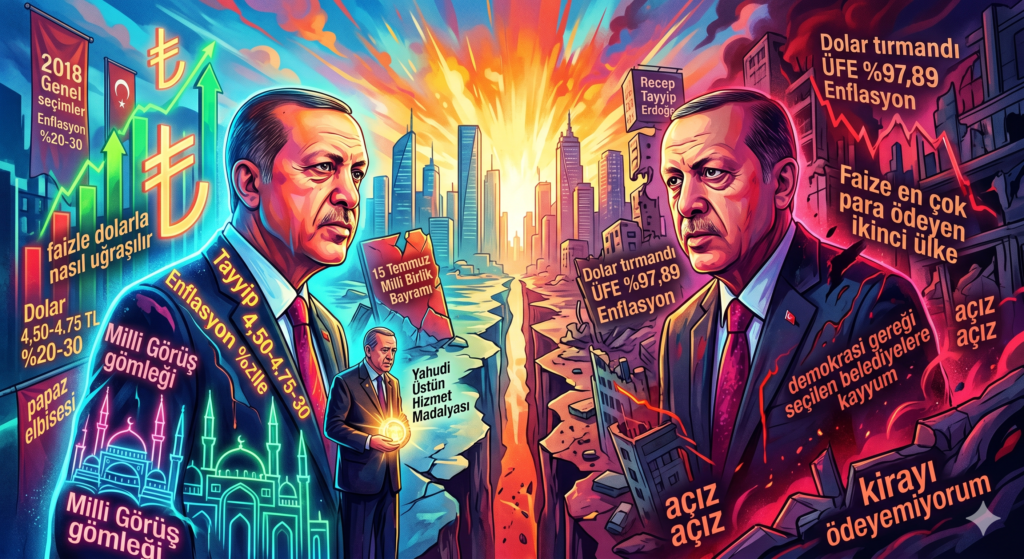 Tayyip Bey: 2018 Genel Seçimleri öncesi, “Verin yetkiyi; faizle, dolarla nasıl uğraşılır görün,” dediği zaman dolar 4,50-4,75 TL, enflasyon ise %20-30 civarındaydı. Oysa enflasyon (ÜFE’ye göre) 2021’de %79,81’e, 2022’de ise %97,89’a tırmandı. Dün “Nas var, nas,” denilerek faize karşı çıkılırken; bugün dünyada faize en çok para ödeyen ikinci ülke konumundayız. 2026’nın ilk üç ayındaki enflasyon oranı şimdiden %10,04 seviyesine ulaştı. (Tabii bunda, maaş zamlarını düşük tutmak amacıyla 2025 Aralık ayı enflasyon verilerini düşük göstermenin etkisi de yadsınamaz.) Oysa hükümetin 2026 yılı için hedeflediği enflasyon oranı %16,00 idi.