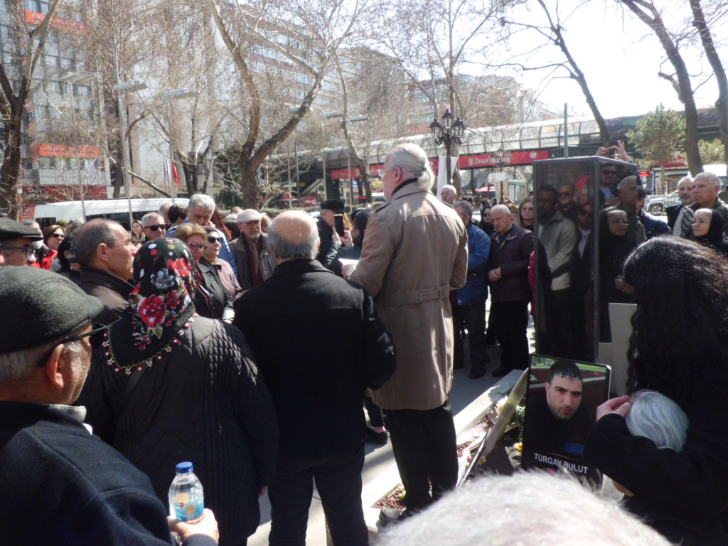 diye dönüp bakmadığı anma töreninde Platform adına yine Güvenpark katliamında 20 yaşındaki yeğeni Elvin Buğra Aslan’ı kaybeden emekli Albay Faruk Dinç bir konuşma yaptı.