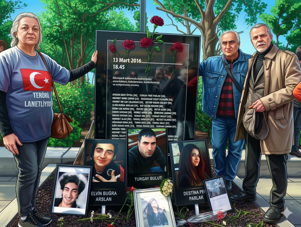13 Mart Güvenpark Platformu adıyla mücadelelerini sürdüren acılı aileler, her yıl olduğu gibi bu yıl da Güvenpark’ta bir araya gelip Ankara Büyükşehir Belediye Başkanı Mansur Yavaş’ın geçen yıl yaptırdığı anıtı, saldırıda kaybettikleri yakınlarının fotoğrafları ve karanfillerle donattı.
