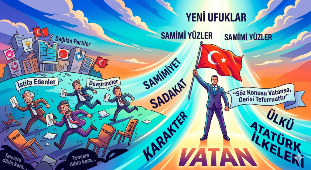 Nazım Peker’e ait bu metin, siyasi partilerden ayrılan figürlerin yarattığı etik tartışmaları ve siyasi sadakat kavramını eleştirel bir dille ele almaktadır. Yazar, istifa eden bireylerden ziyade, bu kişilere en başta itibar gösteren ve makam veren parti yönetimlerini suçlamaktadır. Temel vurgu, şahsi menfaatlerin ve mevkilerin ötesinde, vatanseverlik ve ilkeli duruşun her türlü siyasi oluşumun merkezinde yer alması gerektiğidir. Metne göre, kendi partisine ihanet edenlerin gittikleri yeni yerlerde de benzer davranışlar sergileyeceği savunularak karakter ve dürüstlük ön plana çıkarılmaktadır. Sonuç olarak yazar, siyasi partilerin geçici devşirme isimler yerine, samimi ve liyakat sahibi yüzlerle yola devam etmelerini tavsiye etmektedir.