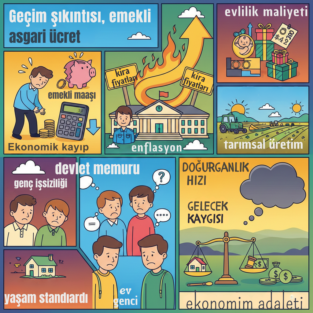 Yazar, Türkiye’de yaşanan ekonomik dar boğazı ve düşen alım gücünü emekli bir devlet memurunun perspektifinden ele almaktadır. Metinde, geçmiş yıllara kıyasla maaşların asgari ücret karşısında erimesi ve sosyal statü kaybı somut verilerle eleştirilmektedir. Özellikle gençlerin işsizlik ve yüksek maliyetler nedeniyle evlenemediği, emeklilerin ise temel ihtiyaçlarını karşılamakta zorlandığı vurgulanmaktadır. Mevcut ekonomi politikalarının toplumun farklı kesimleri üzerindeki olumsuz etkileri sorgulanırken, refah seviyesinin artırılması için köklü çözümler beklenmektedir. Sonuç olarak kaynak, ülkenin geleceğine dair duyulan kaygıyı ve halkın içinden geçtiği geçim mücadelesini çarpıcı bir dille özetlemektedir.