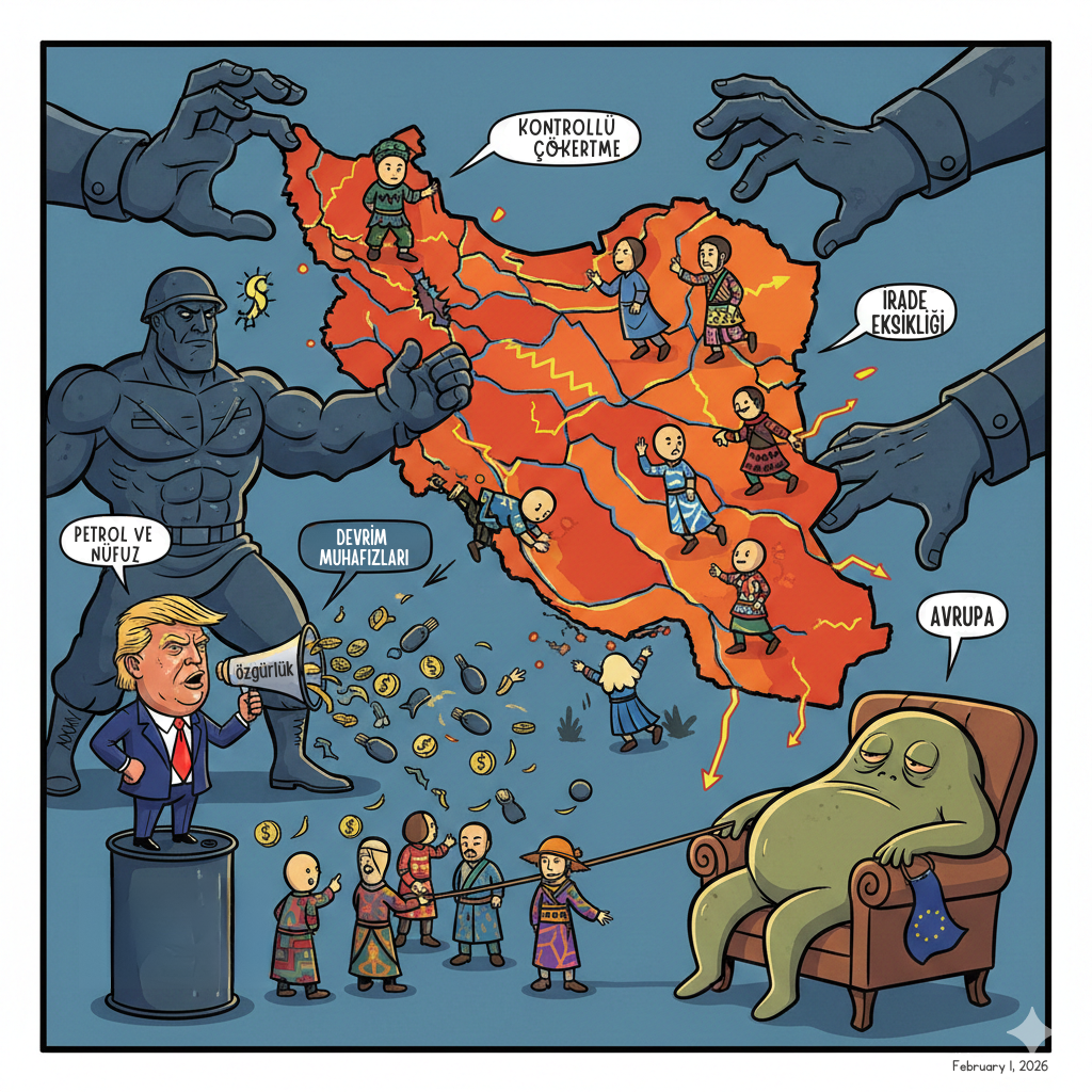Dürüst olmak gerekirse, İran’da yaşananlar yeni bir düzenin habercisi değil, eski bir düzenin devamıdır. Protestolar jeopolitik bir araca dönüştürülmekte, azınlıklar piyon haline getirilmekte, rejimler şeytanlaştırılmakta ve perde arkasında yeni pazarlıklar yapılmaktadır. Bunun özgürlük getireceğine inananlar, bu modelin geride bıraktığı yıkımı görmezden gelmektedir. Gidilen yön özgürleşme değil, kontrollü bir çökertmedir. İran ise bu hikâyenin yalnızca bir sonraki bölümüdür.