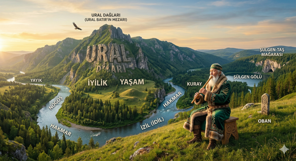 Ural yolu – yüksek dağ, Ural kabri – şanlı dağ- “Ural” olup kalmış, de. (Başkurt Halk Destanı 1996: 337)