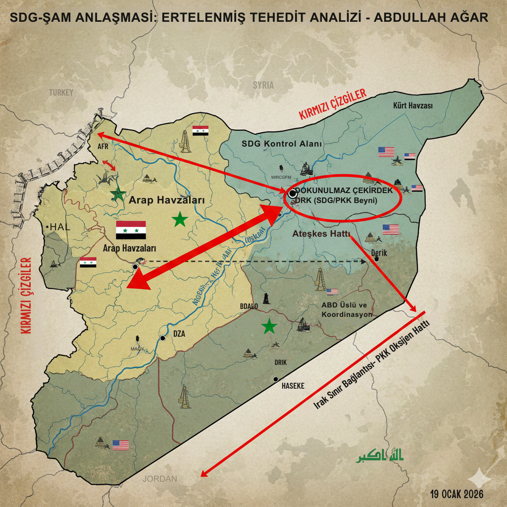 NET STRATEJİK SONUÇ: Bu anlaşma sonunda: SDG/YPG/PKK tasfiye edilmiyor, silah bırakılmıyor, ABD çekilmiyor, Irak hattı kesilmiyor. Kürt havzaları devlet kılıfıyla korunuyor.