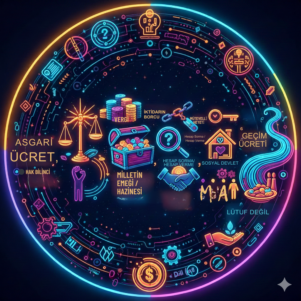 Bu makale, asgari ücretin devlet tarafından sunulan bir lütuf değil, halkın ödediği vergilerle oluşan bir hak iadesi olduğunu savunmaktadır. Yazar, devletin kendine ait bir hazinesi olmadığını, kasadaki her kuruşun doğrudan milletin emeğinden ve ödemelerinden geldiğini vurgular. Toplumdaki “devlet veriyor” yanılgısını eleştirerek, vatandaşların kendi paralarını talep etmelerinin bir başkaşırı değil, demokratik bir bilinç ve hak arayışı olduğunu ifade eder. Sosyal devletin görevi sadaka dağıtmak değil, adaleti sağlayarak kul hakkını teslim etmektir. Sonuç olarak yazı, ekonomik talepleri ahlaki ve hukuki bir zemine oturtarak halkı kendi alacağına sahip çıkmaya davet eder.