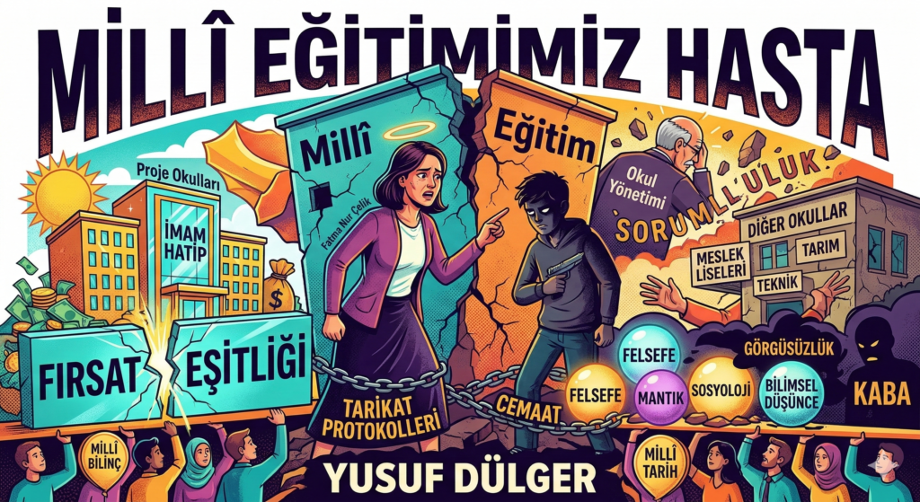 Sunulan metin, Türkiye’deki eğitim sisteminin yapısal sorunlarını ve bir öğretmenin şiddet kurbanı olmasıyla su yüzüne çıkan yönetimsel zafiyetleri sert bir dille eleştirmektedir. Yazar, okullardaki disiplinsizliğin ve liyakatsiz atamaların eğitim ortamını güvensiz hale getirdiğini savunurken, müfredattaki sosyal bilimlerin zayıflatılmasının toplumsal yozlaşmaya yol açtığını belirtmektedir. Özellikle “Proje Okulları” uygulaması üzerinden eğitimde fırsat eşitliğinin bozulduğu ve kaynakların taraflı şekilde dağıtıldığı vurgulanmaktadır. Metinde, dini yapılanmalarla kurulan iş birliklerinin ve belirli okul türlerine tanınan ayrıcalıkların çağdaş ve bilimsel eğitim anlayışına zarar verdiği ifade edilmektedir. Sonuç olarak yazar, rasyonel düşünceden uzaklaşan bu politikaların ülkeyi küresel rekabette geri bıraktığına dair ciddi uyarılarda bulunmaktadır.