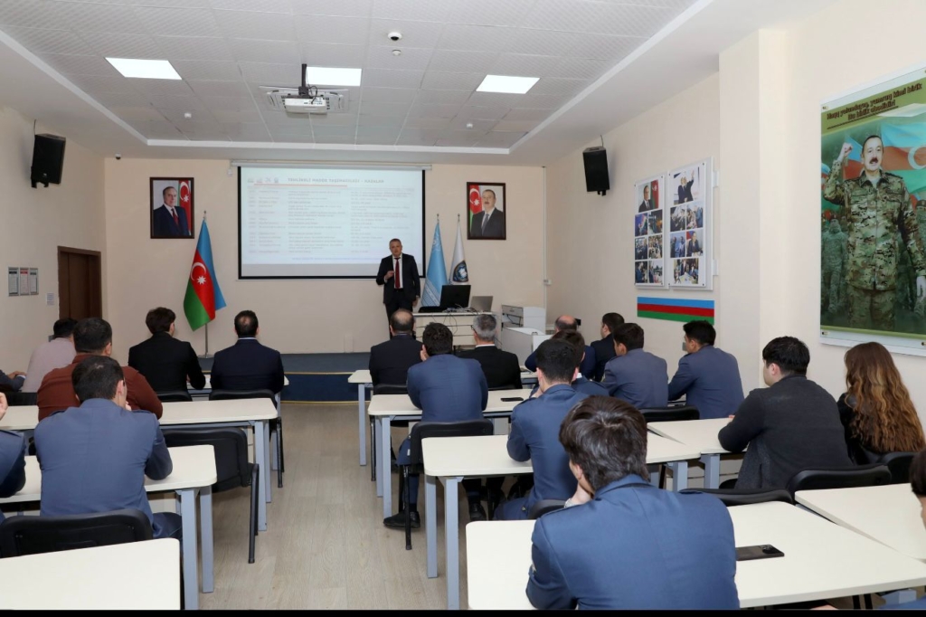 Dernek Başkanı Murat Özçelik, Bakü Devlet Gümrük Akademisi’nde akademisyen ve sektör temsilcilerine ADR, IMDG Code, RID ve IATA DGR kapsamında tehlikeli madde taşımacılığını anlattı.