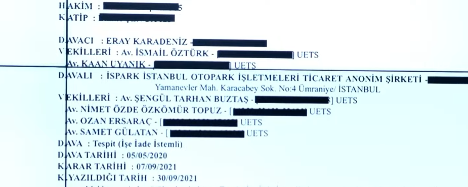 2010 yılında İSPARK’ta işe girmesine ve çalışan olarak maaş almasına karşın herhangi bir şekilde işgücüne katılmadığı gerekçesiyle 2020 yılında İSPARK ile ilişiği kesilen Karadeniz, bu durumdan şikayetçi oldu ve işe dövüş davası açtı.