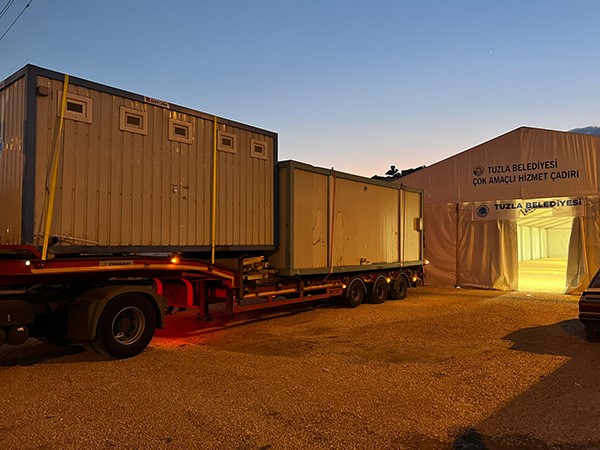 Bu kapsamda deprem bölgelerine Tuzla Kızılay Şubesi Başkanlığı ile 175 tır gönderen Tuzla Belediyesi, iş makineleri, mobil duş ve tuvaletler, çöp konteynerleri, 126 personel ile bölgedeki çalışmalarına devam ediyor. Tuzla Belediye Başkanı Dr. Şadi Yazıcı da Hatay’a giderek aşevi ve lojistik çadırını ziyaret etti. Ayrıca Hatay’a kurulacak konteyner kentin kurulacağı alanda incelemelerde bulundu.