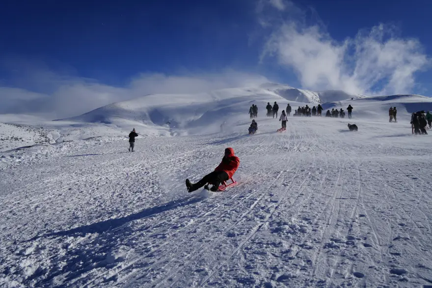 Birçok off-road tutkunu bölgede kar kızağı yaptı.